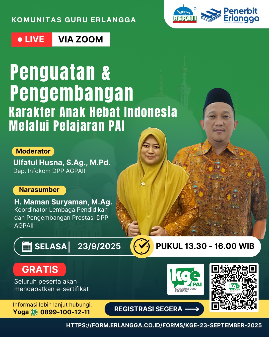 Yuk bergabung dalam Webinar KGE PAI (Komunitas Guru Erlangga) yang akan diselenggarakan pada: