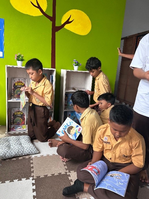 Melalui program ini, Solidaritas Erlangga menyalurkan bantuan berupa rak buku, koleksi bacaan edukatif, buku cerita anak, ensiklopedia sederhana, serta buku penguatan karakter. Area pojok baca dirancang dengan tampilan yang ceria dan ramah anak agar siswa merasa nyaman dan tertarik untuk membaca.