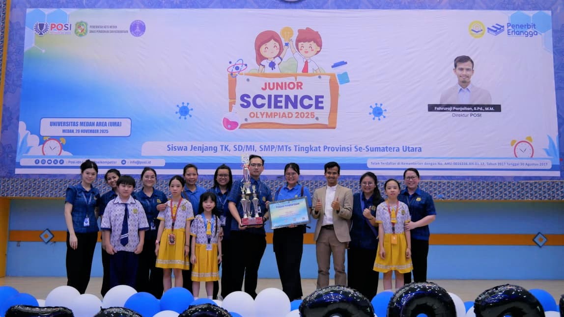 Medan, 14 Desember 2025 – Penerbit Erlangga hadir sebagai sponsor dalam kegiatan Pusat Olimpiade Sains Indonesia (POSI) Sumatra Utara yang diselenggarakan pada Minggu, 14 Desember 2025, di Universitas Medan Area. Kegiatan ini melibatkan peserta dari berbagai jenjang pendidikan, mulai dari TK hingga SMA, dan menjadi salah satu ajang penguatan budaya literasi sains dan kompetisi akademik di wilayah Sumatra Utara.