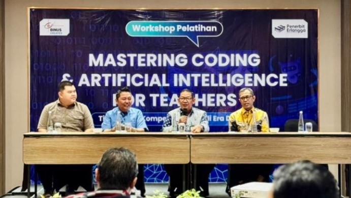 Dalam upaya memperkuat transformasi pendidikan di era digital, Penerbit Erlangga bekerja sama dengan Binus Creates (Binus University) menyelenggarakan pelatihan bertajuk “Mastering Coding & AI for Teacher” yang berlangsung pada Kamis, 16 April 2026 di Hotel Fugo Samarinda. Kegiatan ini menjadi bagian dari komitmen berkelanjutan dalam meningkatkan kompetensi tenaga pendidik, khususnya dalam menghadapi perkembangan teknologi yang semakin pesat.